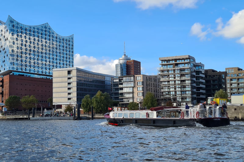 Barkassentörn (ca. 1,5 Stunden). Wir schippern mit einer traditionellen Barkasse durch die HafenCity. Die Route führt entlang der Elbphilharmonie und dem Westfield Überseequartier zum Baakenhöft, dem zukünftigen Standort der Staatsoper. Ein Abstecher führt in die geschichtsträchtigen Becken von Moldau- und Saalehafen in den künftigen Stadtteil Grasbrook. Anschließend statten wir der Viermastbark PEKING am aktuellen Liegeplatz am Hafenmuseum 50er Schuppen einen Besuch ab und bestaunen die historischen Schiffe der Stiftung Hamburg Maritim am Bremer Kai.