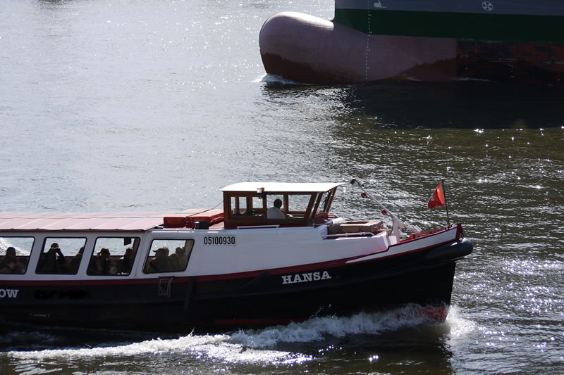 Gut 105 Kilometer trennen die Hansestadt von der offenen Nordsee, die größeren Schiffe benötigen für diese Strecke je nach Tide zwischen 4 und 6 Stunden.